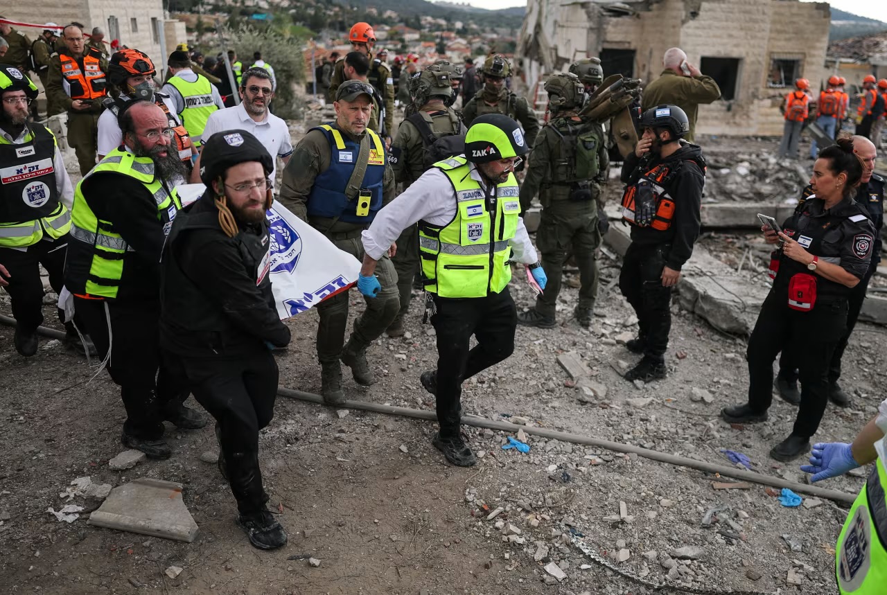 Nine people were killed in a direct missile hit on a residential building near Jerusalem, first responders said on Sunday.