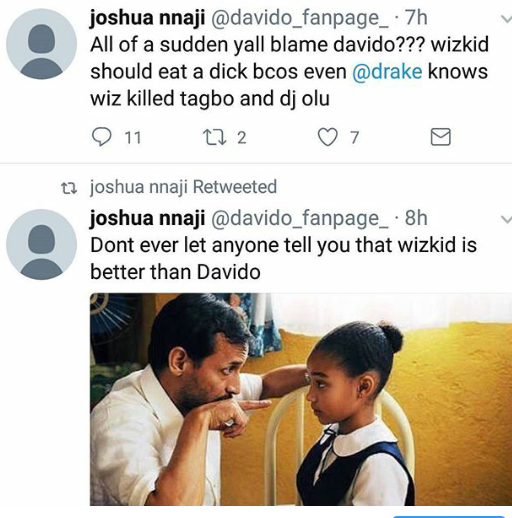 NEWS A crazed Davido fan alleges Wizkid is behind Tagbo’s death By niyidaram Posted on October 12, 2017 Share Tweet Share Share Email Comments So an obviously deluded Davido fan has been alleging Wizkid is behind Tagbo’s death … He has been tweeting non-stop,saying Wizkid should confess. Like this:Like Loading... Related Items: Share Tweet Share Share Email 1 Comment 1 Comment seun October 27, 2017 at 7:59 pm Madness Reply Leave a Reply Cancel replyYour email address will not be published. Required fields are marked *Comment * Name * Email * Website Δ