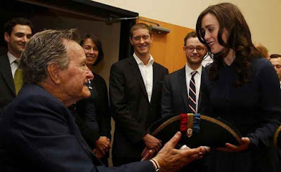 “He didn’t shake my hand. He touched me from behind from his wheelchair with his wife Barbara Bush by his side. He told me a dirty joke. And then, all the while being photographed, touched me again. Barbara rolled her eyes as if to say ‘not again.’ His security guard told me I shouldn’t have stood next to him for the photo.”