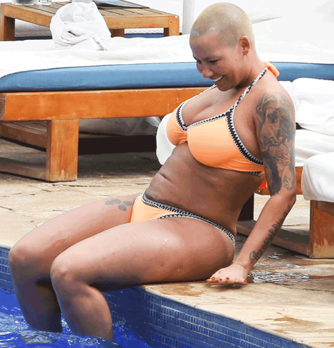Some unflattering photos of Amber Rose from her recent holiday was posted online and many fans said she’s losing her beauty and famous curves as she took a dip in the pool of her hotel in a sexy orange bikini. She still looks good. The photos were just not taken from good angles. See more pics after the cut…
