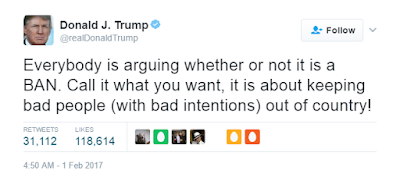 NEWS Call it what you want,it’s about keeping bad people out of the US-Donald Trump on ‘Muslim ban’ By niyidaram Posted on February 1, 2017 Share Tweet Share Share Email Comments From the desk of Twitter savvy President Trump.. Like this:Like Loading... Related Items: Share Tweet Share Share Email Click to comment Leave a Reply Cancel replyYour email address will not be published. Required fields are marked *Comment * Name * Email * Website Δ