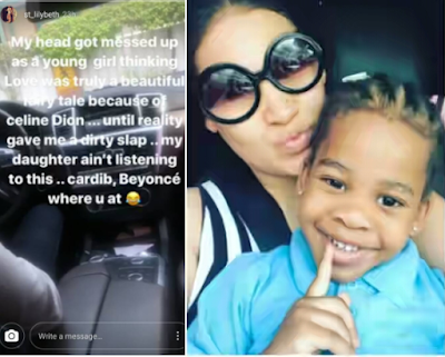 daughter listen to Celine Dion’s music .Instead,she listens to  Beyonce