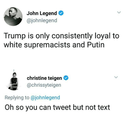 Chrissy Teigen calls out John Legend for tweeting about Trump but not texting her