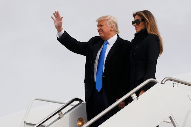 Donald Trump has arrived in Washington DC ahead of tomorrow’s inauguration ceremony.He was spotted emerging from his private jet with his wife Melania Trump ,his children and their families.