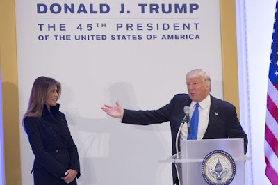 There followed an awkward moment when Mrs Trump left the stage. Her husband motioned for her to sit on the front row.