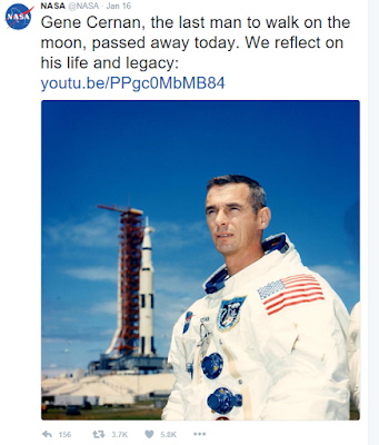confirmed on Twitter that retired astronaut, Eugene Cernan, who was the