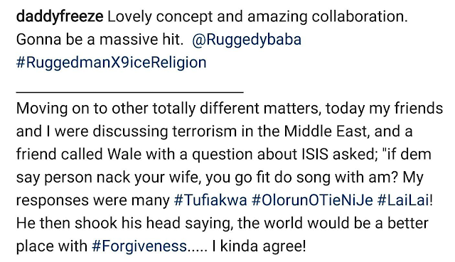 NEWS Freeze shades 9ice and Ruggedman in new post By niyidaram Posted on August 13, 2016 Share Tweet Share Share Email Comments OAP Freeze shared the song cover of a collabo between 9ice and rapper Ruggedman and shared the post below: Like this:Like Loading... Related Items:Celebrities Share Tweet Share Share Email Recommended for you Aerial Video Shows LA Fires Approaching Homes Lori Harvey Wants Ya’ll To ‘Leave Her Alone’ About Dating ‘Mufasa’ Star Aaron Pierre Patience won’t go scot-free if found guilty –EFCC Click to comment Leave a Reply Cancel replyYour email address will not be published. Required fields are marked *Comment * Name * Email * Website Δ
