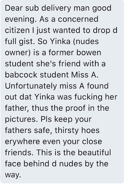 More details about Yinka’s relationship with her friend’s dad have emerged courtesy insiders who talked to Subdeliveryman. Turns out she isn’t even the only one dating this older man. Another friend of theirs, identified as Olaitan, has been exposed along with the flirty messages she shared with her friend’s dad on Whatsapp.