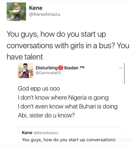NEWS Guys, see how to start up a conversation with a girl on a bus By niyidaram Posted on January 19, 2017 Share Tweet Share Share Email Comments Lol!!! Like this:Like Loading... Related Items: Share Tweet Share Share Email Click to comment Leave a Reply Cancel replyYour email address will not be published. Required fields are marked *Comment * Name * Email * Website Δ