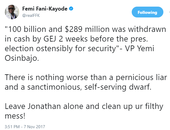 Femi Fani-Kayode describes VP Yemi Osinbajo as ‘a sanctimonious, self-serving dwarf’