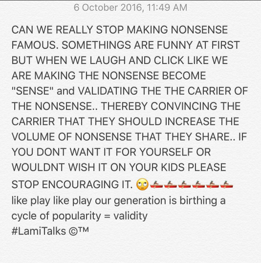 NEWS Untitled Post By niyidaram Posted on October 7, 2016 Share Tweet Share Share Email Comments It seems singer Lami Philips is not happy with the media as she says they should stop making nonsense famous.Do you think it’s for Bobrisky? See comments after the cut… Like this:Like Loading... Related Items:News Share Tweet Share Share Email Recommended for you Man United decide to demolish Old Trafford and build stunning £2BILLION 100,000-seater ‘UMBRELLA’ stadium Femi Otedola‘s net worth drops from $1.8 Billion to $550 Million (See details) Offensive Kim Kardashian robbery costume pulled from site Click to comment Leave a Reply Cancel replyYour email address will not be published. Required fields are marked *Comment * Name * Email * Website Δ