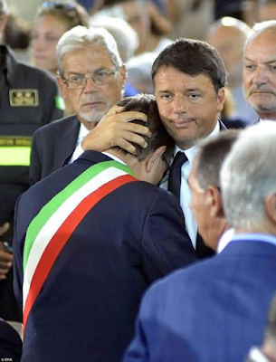 Survivors, family, friends consumed by grief bury the first 35 victims of the earthquake in Ascoli Piceno, the capital of the Marche region.  Italian President Sergio Mattarella, Senate President Pietro Grasso, Lower Chamber President Laura Boldrini and Italian Premier Matteo Renzi also attended the funeral service.
