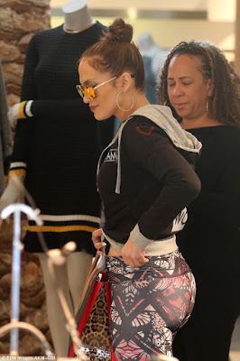Mom of two, Jennifer Lopez, displayed her curvy behind in tight leggings as she went on a shopping spree in Beverley Hills.