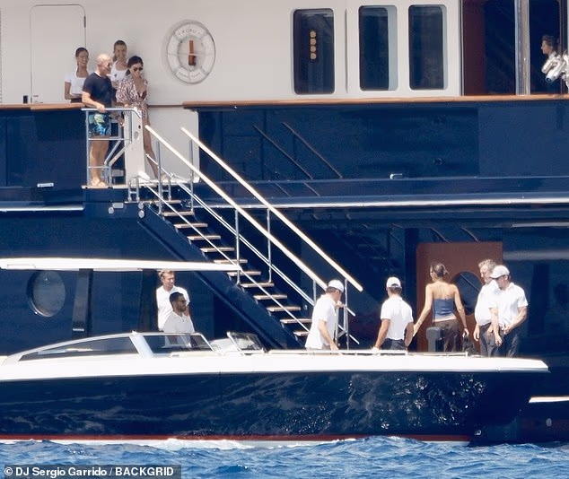Jeff Bezos and Lauren Sánchez welcomed Leonardo DiCaprio and his girlfriend Vittoria Ceretti aboard their $485 million superyacht, Koru, on Sunday for a relaxed day off the coast of Ibiza.
