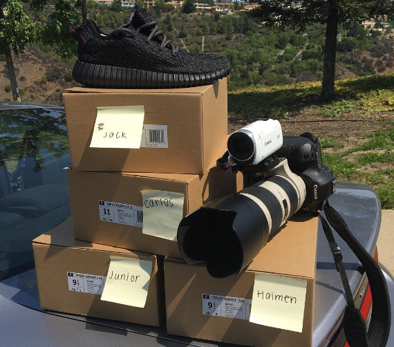 ‘Thx to Kim Kardashian and Kanye West for hooking me and my fellow papz up with Yeezy boost 350.”