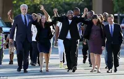 Wright walked free a few hours later, surrounded by his relatives. His father, his 28-year-old son and his two granddaughters, 1 and 8 years old, witnessed his first moments as a free man.