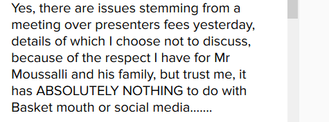 Amin Mousalli is the man OAP Freeze says he has respect for and for that, won’t disclose the details of the fallout the both of them had over presenters fees yesterday