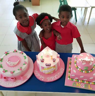 She shared a photo of the birthday girl with her siblings as they cut her cake and wrote;