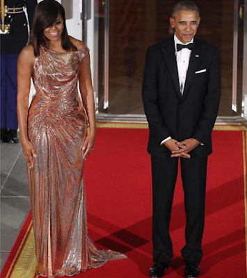 Michelle Obama looked stunning in an Atelier Versace chainmail rose gold