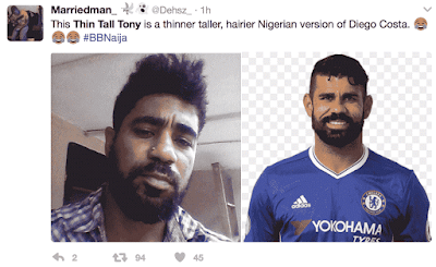 Nigerians are saying Big Brother Naija Thin Tall Tony looks like Diego Costa (photos)