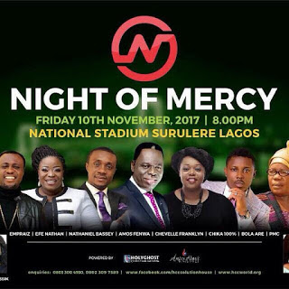 The event scheduled to kick off by8pm is the 7th edition of the Night of Mercy crusade which the Church organises at the end if the year as spiritual melting point featuring top gospel musicians, prophetic ministration and life changing testimonies.