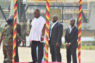 The new Ghanaian President, Nana Addo Dankwa Akufo-Addo on Monday morning started work at the presidential palace by first inspecting a guard of honour mounted by the Ghana Armed Forces.