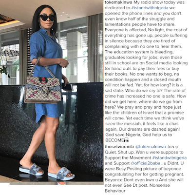 See this IG User’s savage reply to Toke Makinwa’s #Istandwithnigeria post