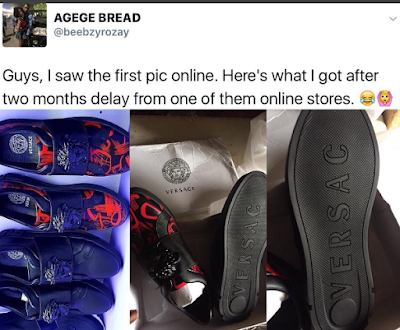 NEWS See What This Man Who Ordered A Versace Shoe Got By niyidaram Posted on January 15, 2017 Share Tweet Share Share Email Comments Following a two months wait to get a shoe he ordered, a Nigerian man finally got his shoes but surprsing one of the letters on the shoe was missing. Like this:Like Loading... Related Items: Share Tweet Share Share Email Click to comment Leave a Reply Cancel replyYour email address will not be published. Required fields are marked *Comment * Name * Email * Website Δ