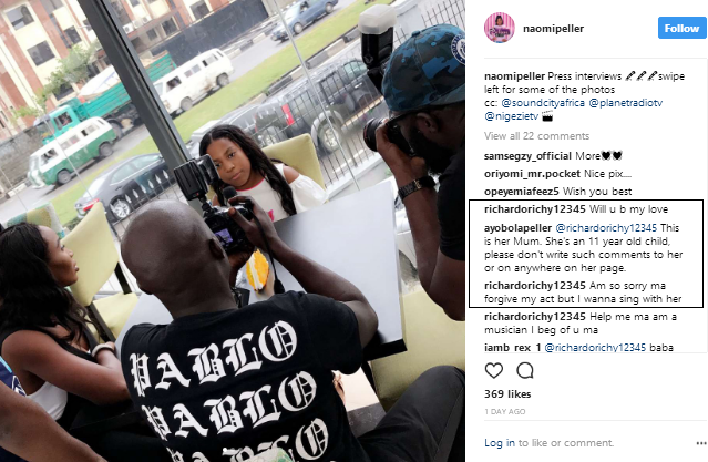 NEWS She Is Just 11-Years Old – Ayobola Peller Cautions Pervert Lurking Around Her Daughter On IG By niyidaram Posted on September 6, 2017 Share Tweet Share Share Email Comments Ayobola Peller wife to Quilox owner, Shina Peller, immediately put a stop to what looks like a pervert alert on her daughter’s photo on IG. Like this:Like Loading... Related Items: Share Tweet Share Share Email Click to comment Leave a Reply Cancel replyYour email address will not be published. Required fields are marked *Comment * Name * Email * Website Δ