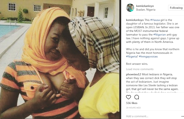 This #Hausa girl is the daughter of a famous legislator. She is an open LESBIAN. In 2013, her father was one of the MOST instrumental federal lawmaker to pass the #Nigerian anti-gay law. I have nothing against gays. I grew up with plenty of them in North America.