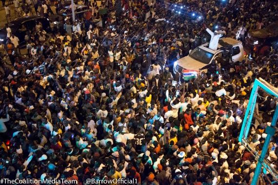 The end of Dictatorship! See the crowd of Gambians that came out to celebrate the arrival of their president, Adama Barrow