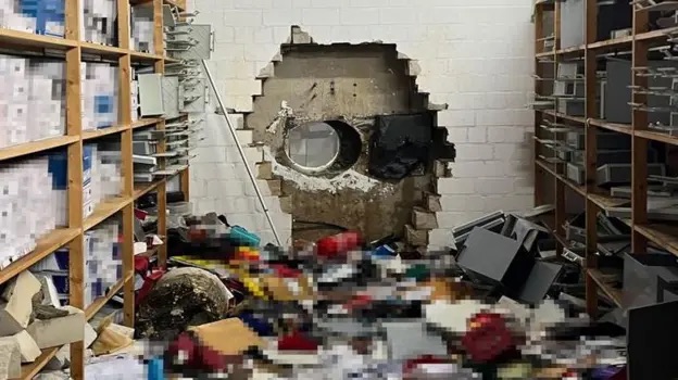 The break-in was discovered when a fire alarm went off in the early hours of Monday. Police and fire crews searching the building found a hole leading into the vault. No arrests have been made.