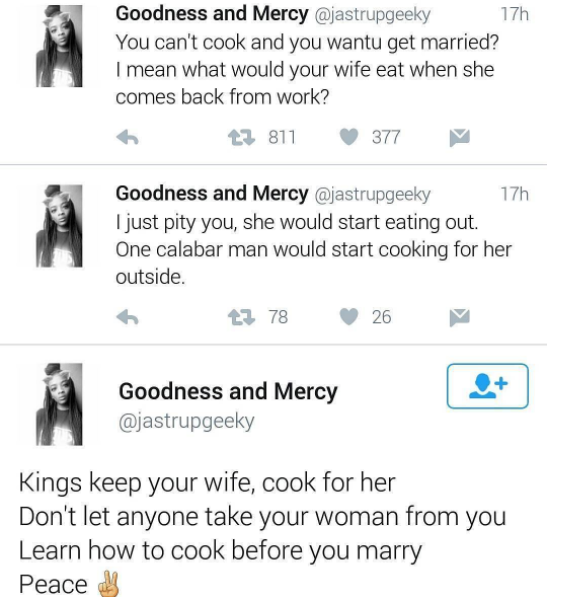 Lol at how she turned he tables around.Women are tired of hearing things you must do to keep a man.How about the things men should do to keep a woman. Correct girl.