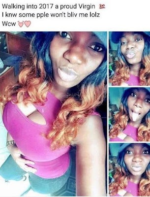 NEWS “Walking into 2017 a proud virgin’ – 27 year old Nigerian girl says By niyidaram Posted on December 31, 2016 Share Tweet Share Share Email Comments Wonderful to hear…though some started bashing her for showing off so much cleavage in the photo of herself she shared… Like this:Like Loading... Related Items: Share Tweet Share Share Email Click to comment Leave a Reply Cancel replyYour email address will not be published. Required fields are marked *Comment * Name * Email * Website Δ