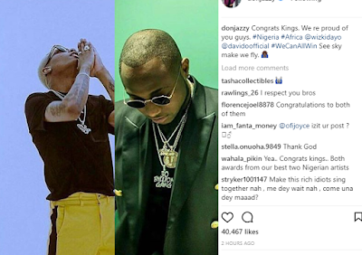 Donjazzy sent out a congratulatory message to both Wizkid and Davido,calling them kings and saying they can all win.He wrote