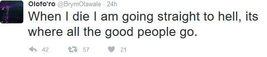 Nigerian singer, Brymo is known for making controversial statements. He made another one on Twitter yesterday. This time he said, ‘When I die I am going straight to hell, its where all the good people go’. Do you agree with this? See how some of his followers reacted to the tweet after the cut…