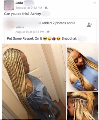 NEWS Woman asks for Beyonce inspired braids,see what she got By niyidaram Posted on September 22, 2017 Share Tweet Share Share Email Comments A lady on Facebook tagged a hairstylist with this photo above, asking if she could do it. Well,days later,they hooked up and the hairstylist shared the photos of the outcome,even tagging the lady. See below Like this:Like Loading... Related Items: Share Tweet Share Share Email Click to comment Leave a Reply Cancel replyYour email address will not be published. Required fields are marked *Comment * Name * Email * Website Δ