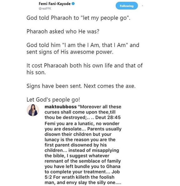 NEWS You are a lunatic – Between Femi Fani-Kayode and Maktoubboss By niyidaram Posted on December 28, 2017 Share Tweet Share Share Email Comments ‘Nuff said right? Like this:Like Loading... Related Items: Share Tweet Share Share Email Click to comment Leave a Reply Cancel replyYour email address will not be published. Required fields are marked *Comment * Name * Email * Website Δ
